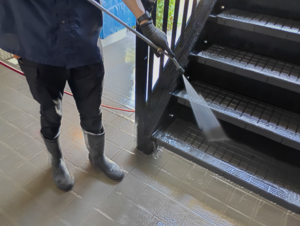 千葉県船橋市のマンションにて特別清掃(高圧洗浄)を行いました。